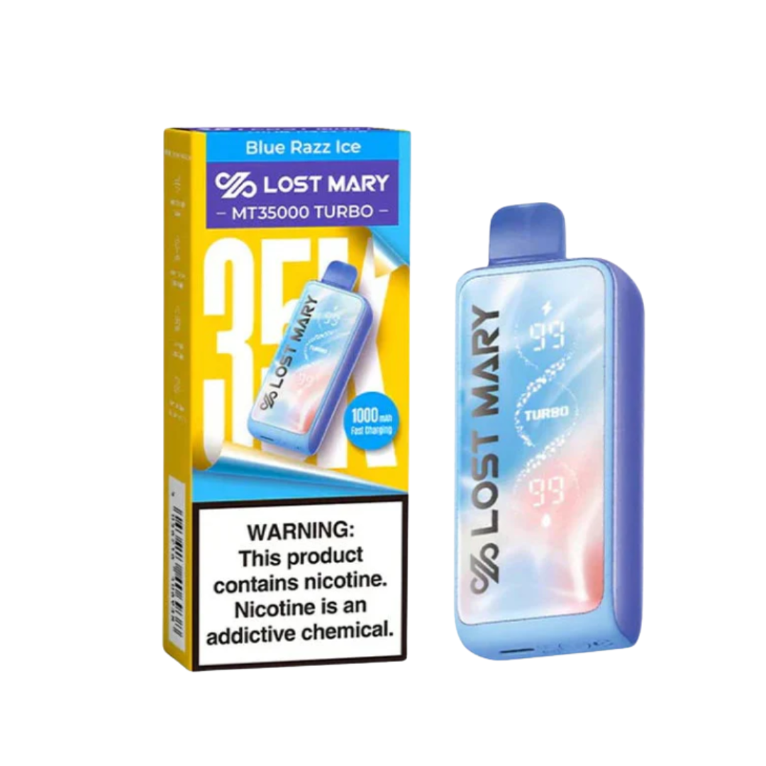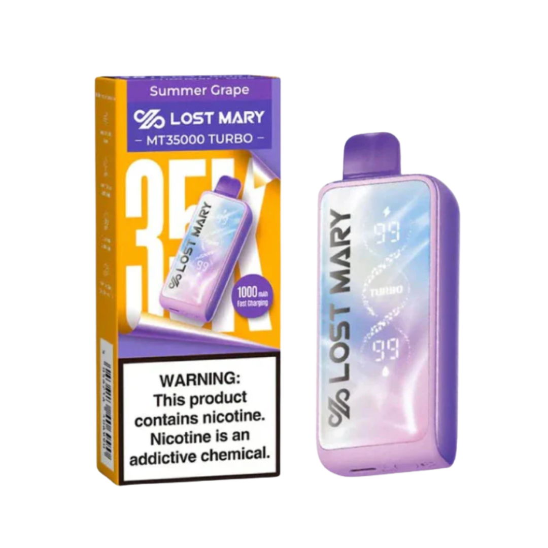he Lost Mary MT35000 Turbo is an upgrade to the MT15000. The MT35000 offers a truncated menu of five familiar Lost Mary flavors, with a new and improved dual-mesh coil for improved performance. Featuring two vape modes, 18 mL, and a 1000 mAh battery, the MT35000 has a user-friendly design and provides a quality vape.